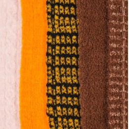 V: Soveltuu erilaisille vaatekankaille, kodin tekstiileille ja koristemateriaaleille osoittaen kerrostumista ja liikettä langan luontaisen rakenteen kautta.